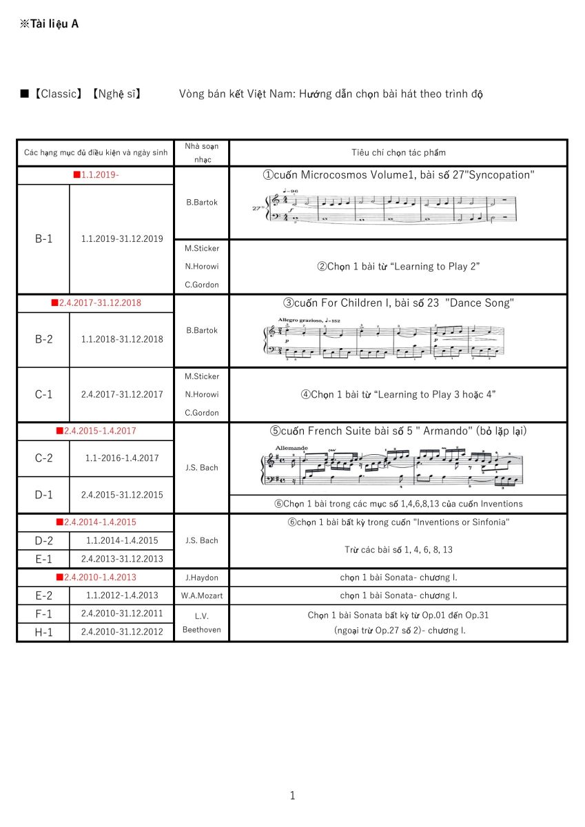 VÒNG BÁN KẾT TẠI VIỆT NAM - HƯỚNG DẪN CHỌN BÀI THEO TRÌNH ĐỘ