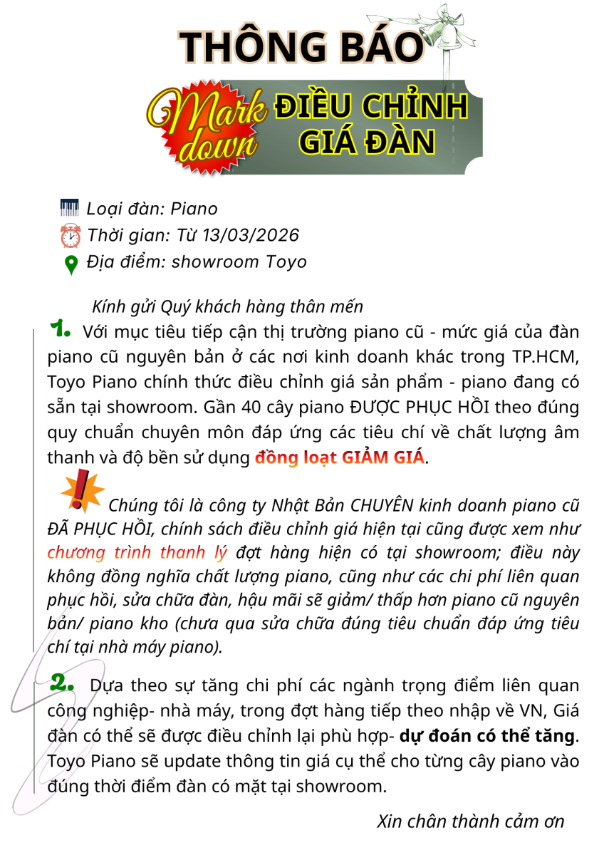 THÔNG BÁO ĐIỀU CHỈNH GIÁ PIANO